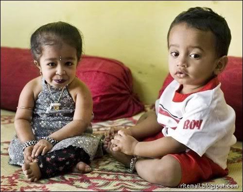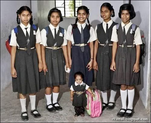 14-year-old girl Amge Jyoti (Jyoti Amge) from India and claims the title of the smallest man. At this time, the official record belongs to a Chinese Hae Pinpinu to see a growth of 74.61 Amge growth Jyoti (Jyoti Amge) 1 foot 11 inches (58 centimeters). Weighs dechoka unlike his odnoklassnits only 5 kilograms.